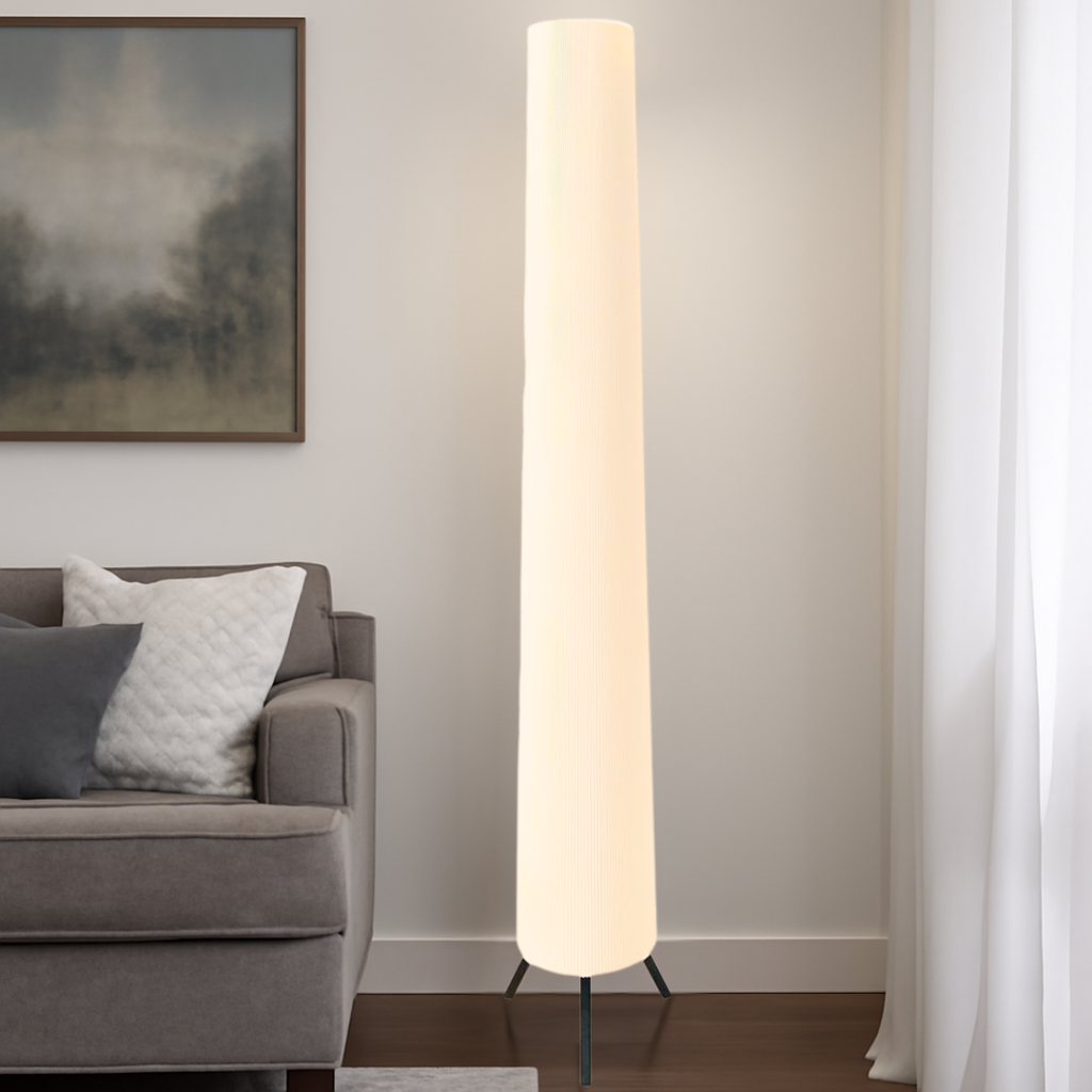 Elevate your interior lighting with the Don Floor Lamp, a striking piece that blends contemporary design with understated elegance. Featuring a space-saving slender silhouette and a cylindrical pleated shade, this floor lamp diffuses light softly, creating a cozy atmosphere. Its tripod base offers a sturdy foundation while complementing the lamp's clean, sleek vertical form—ideal for modern living rooms, bedrooms, or reading corners.