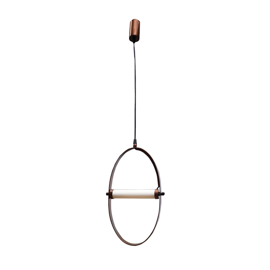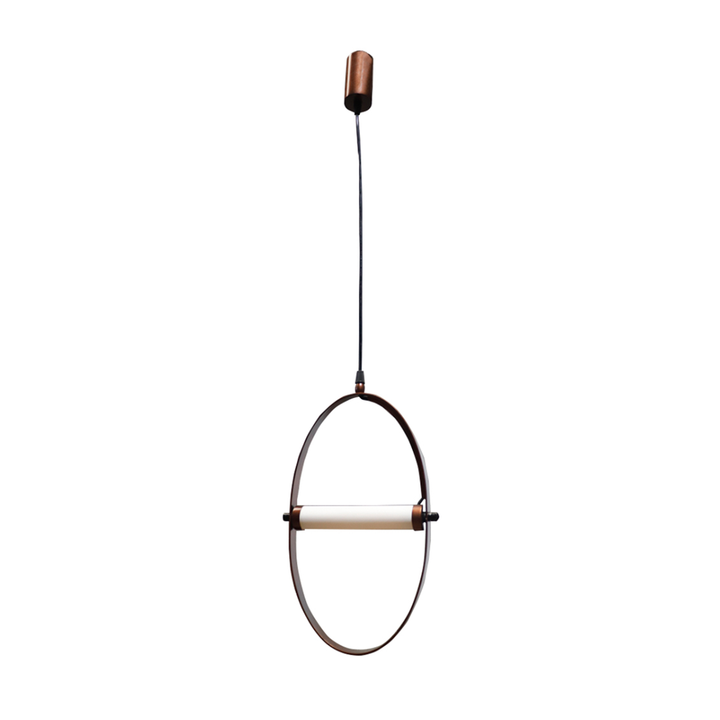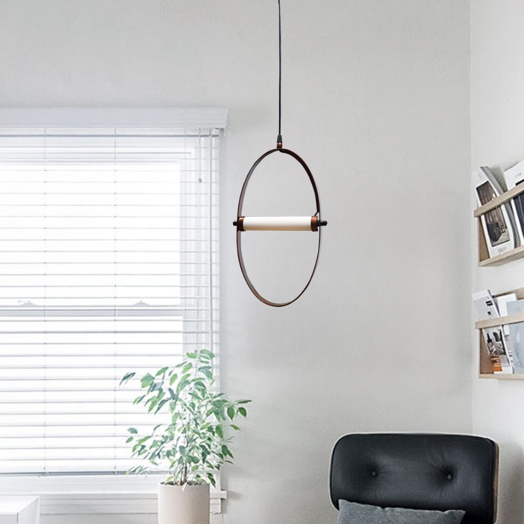 The Horizon Hanging Lamp combines minimalist design with sculptural elegance, featuring a sleek metal ring and a cylindrical diffuser. Its soft, balanced glow makes it an ideal centerpiece for dining tables, kitchen islands, or creative spaces. A modern statement piece that doubles as contemporary art.