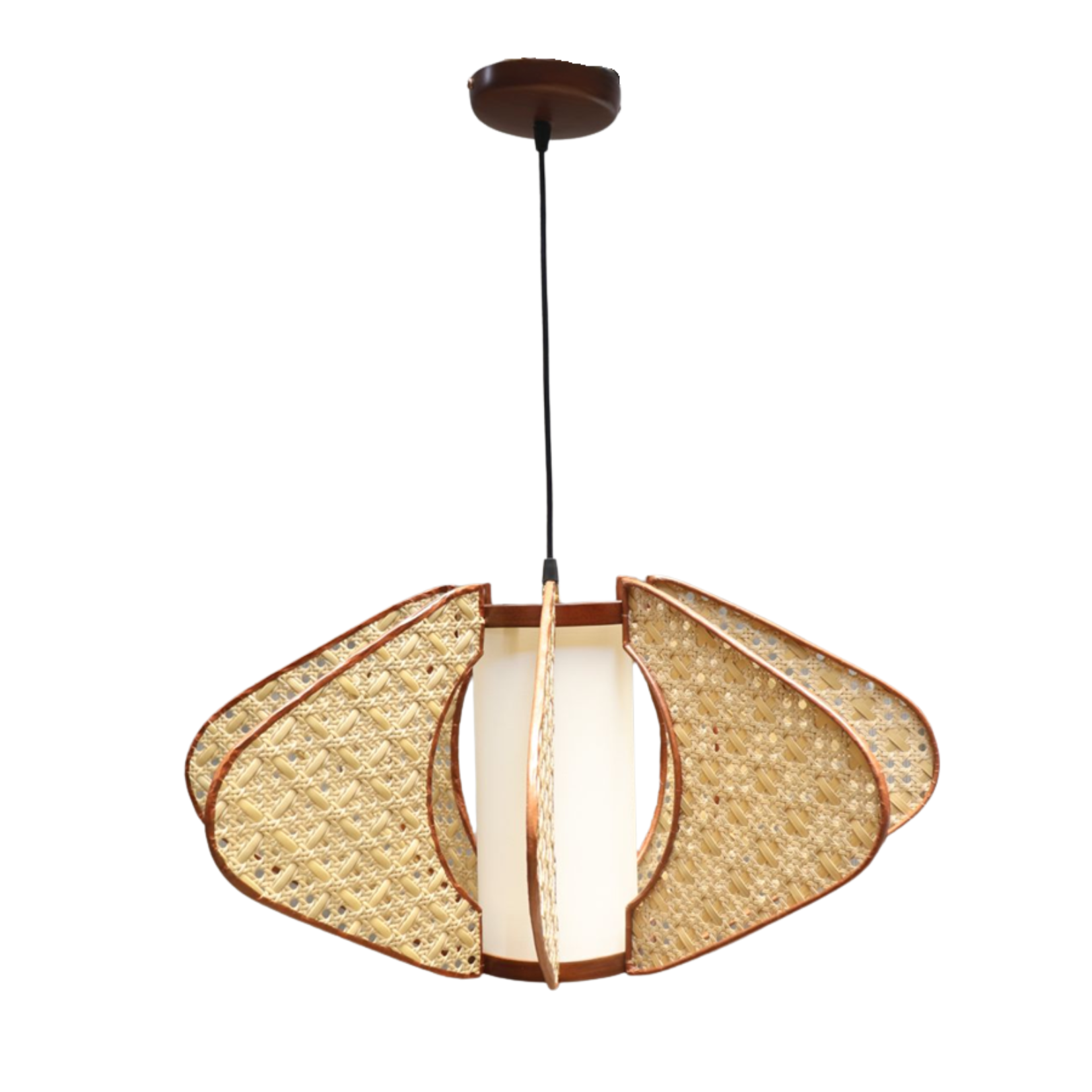 Bring a touch of the tropics into your home with the Samar Hanging Lamp, a stunning homage to Filipino craftsmanship. Featuring intricately handwoven rattan panels framed in smooth wood, this piece blends traditional textures with modern flair. The rattan wings surround a central cylindrical diffuser, softly tempering the light for a warm glow. Perfect as a statement piece in dining areas, entryways, or cozy nooks, the Samar lamp offers a blend of sustainable design and artisanal detail that celebrates natural materials and timeless style.