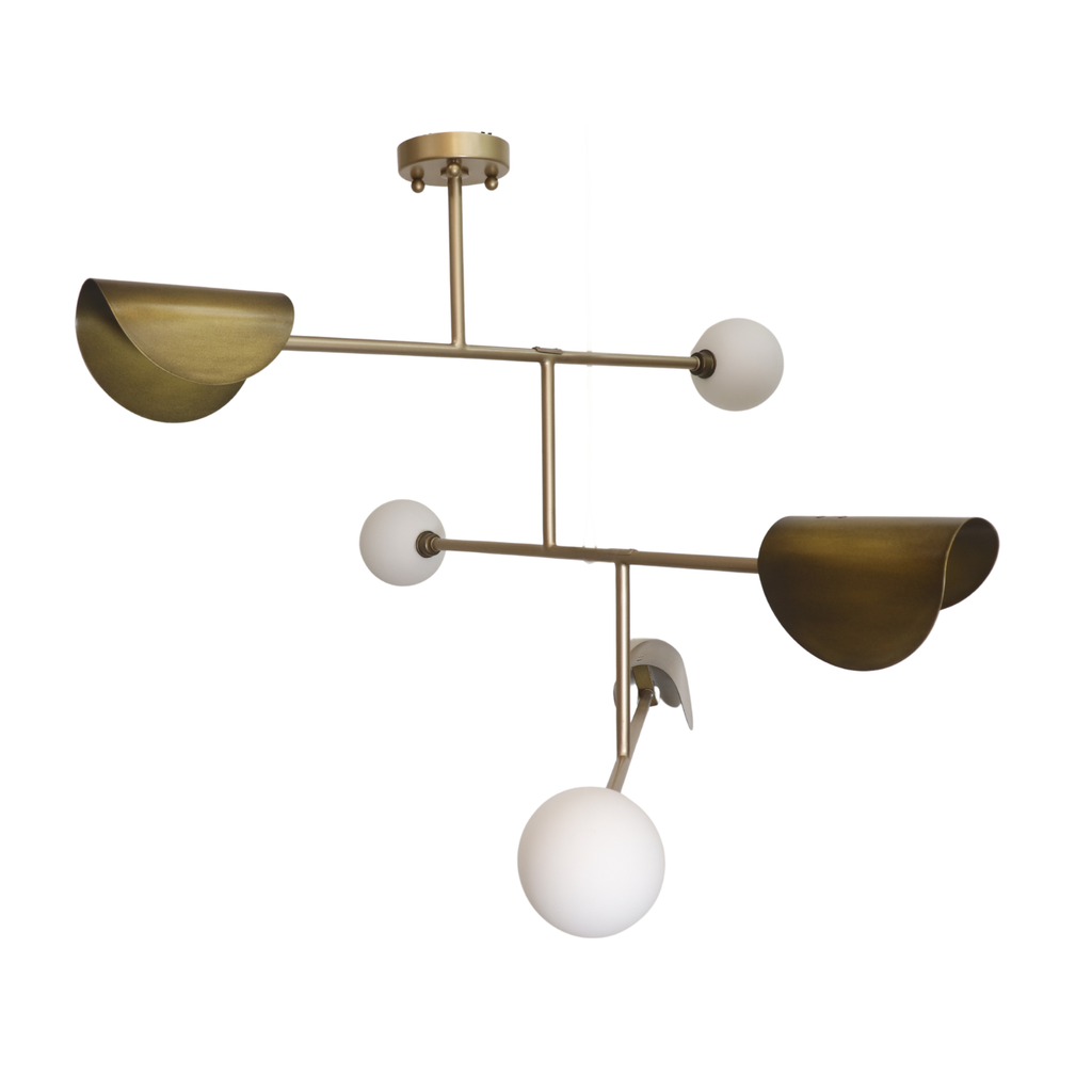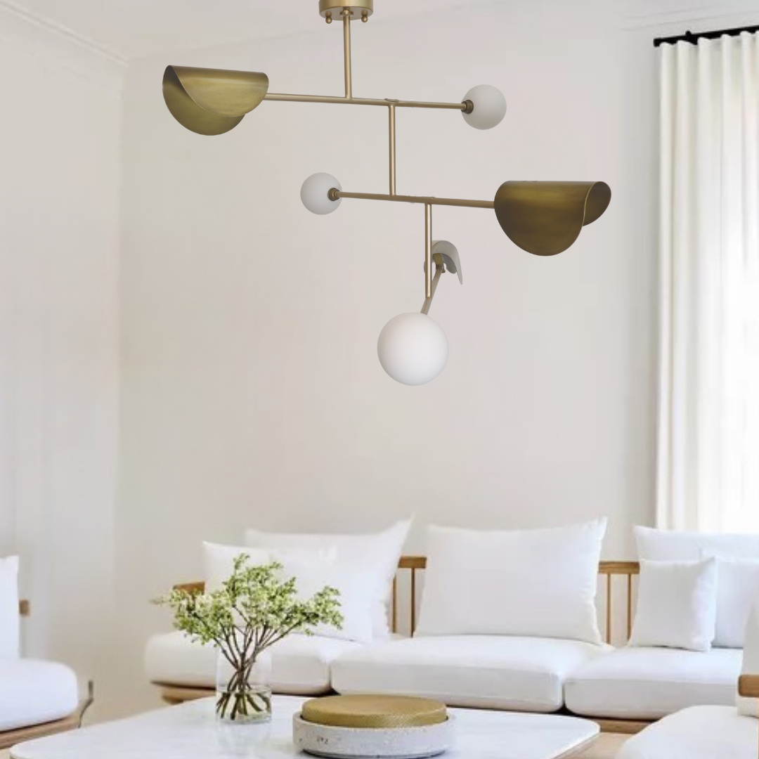 Make a sculptural statement with the Taco Hanging Lamp, a daring blend of contemporary form and dynamic design. Crafted with a sleek metal frame and tubular arms in a luxurious painted gold finish, this chandelier balances elegance with innovation. Frosted white glass globes provide a soft glow, while the distinctive semi-circular “taco”-shaped accents add an unexpected artistic flair. Perfect for modern interiors looking for a standout centerpiece, the Taco Lamp redefines the rules of lighting with movement, contrast, and style.